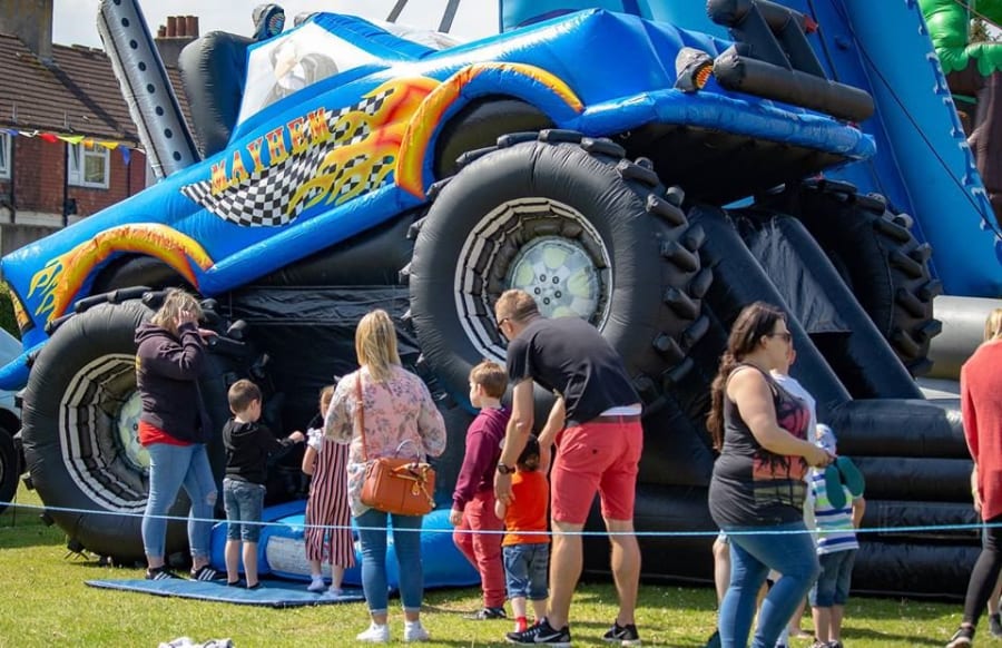 Kids can jump, slide and pretend to drive the Bedlam Promotions way!