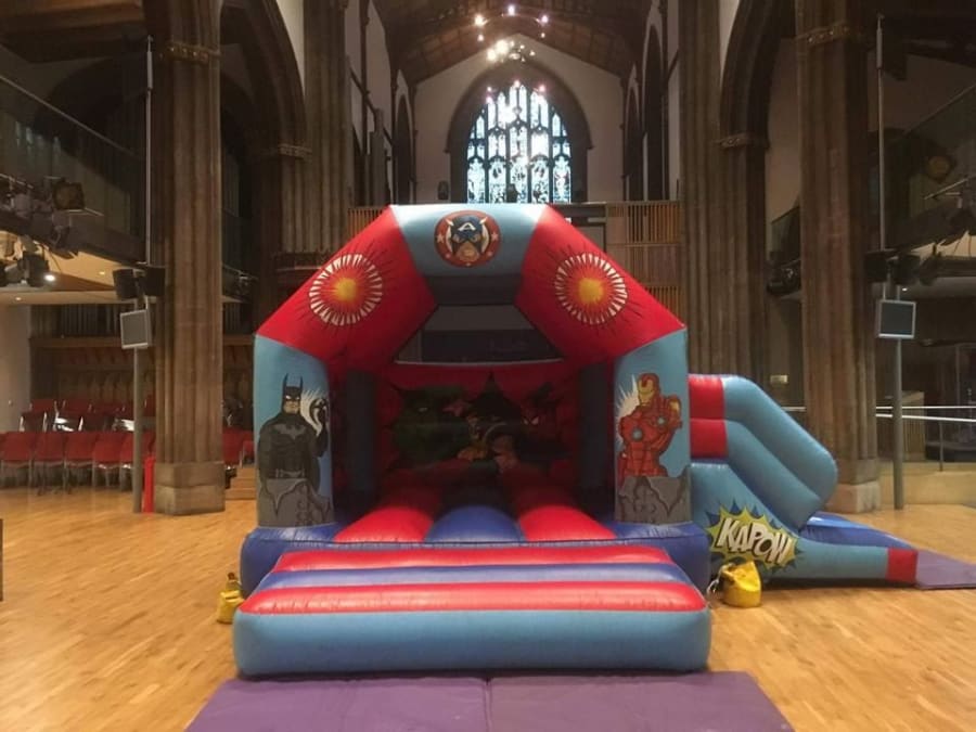 Make your little super hero's day with Bedlam Promotions Super Hero Kids Bouncy Castle